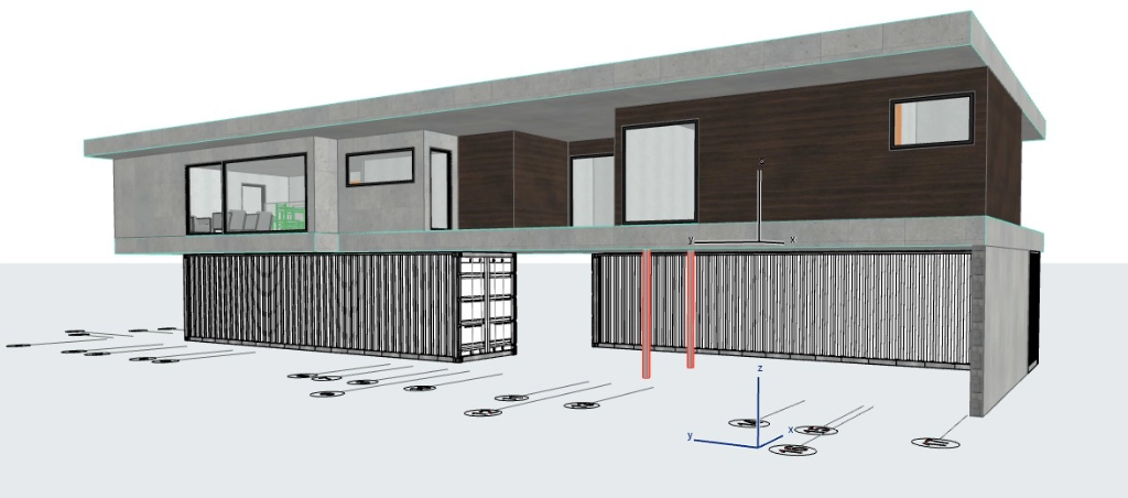 Vivienda unifamiliar, cuenta con 4 habitaciones, 3 baños, cocina, living, comedor, 2 terrazas exteriores, y 2 bodegas container de 25mts2 cada una, como soporte estructural.